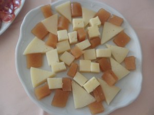 También unos platos de queso a tacos y a cuñas acompañados de carne membrillo (una combinación perfecta)