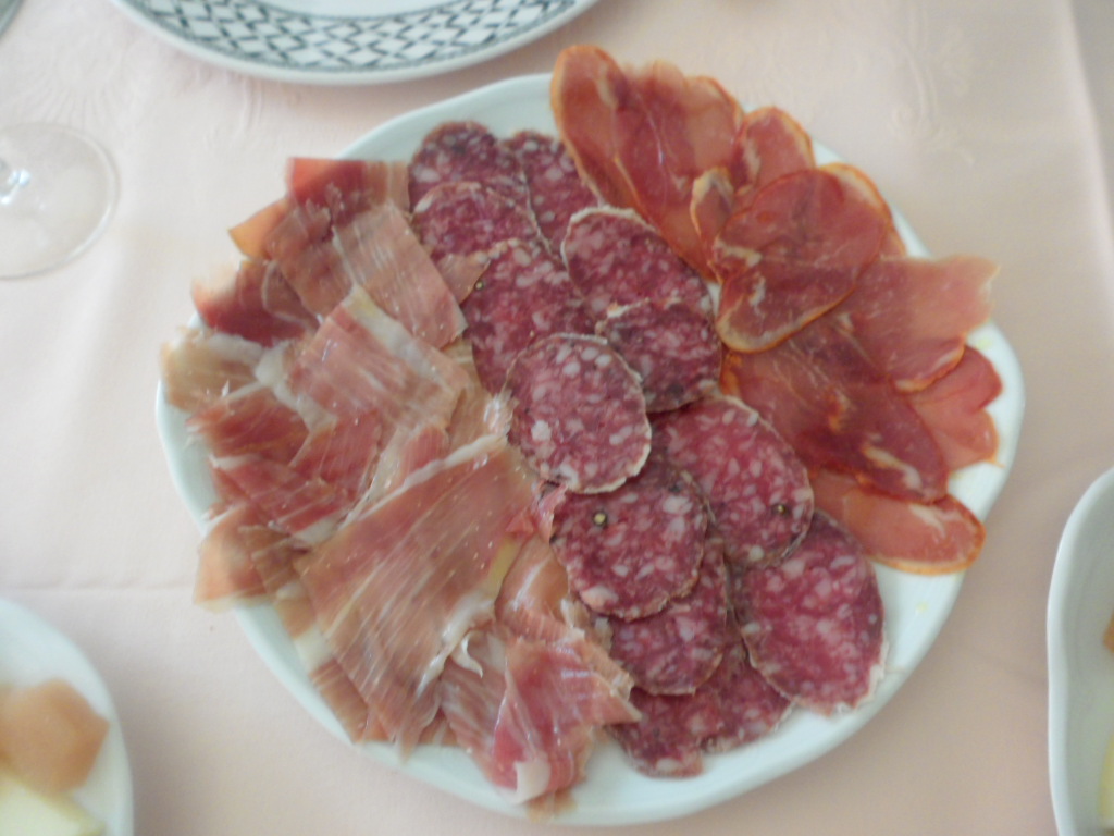 En primer lugar puse unas fuentes de surtido de ibéricos:  Jamón, caña de lomo y salchichón ibéricos