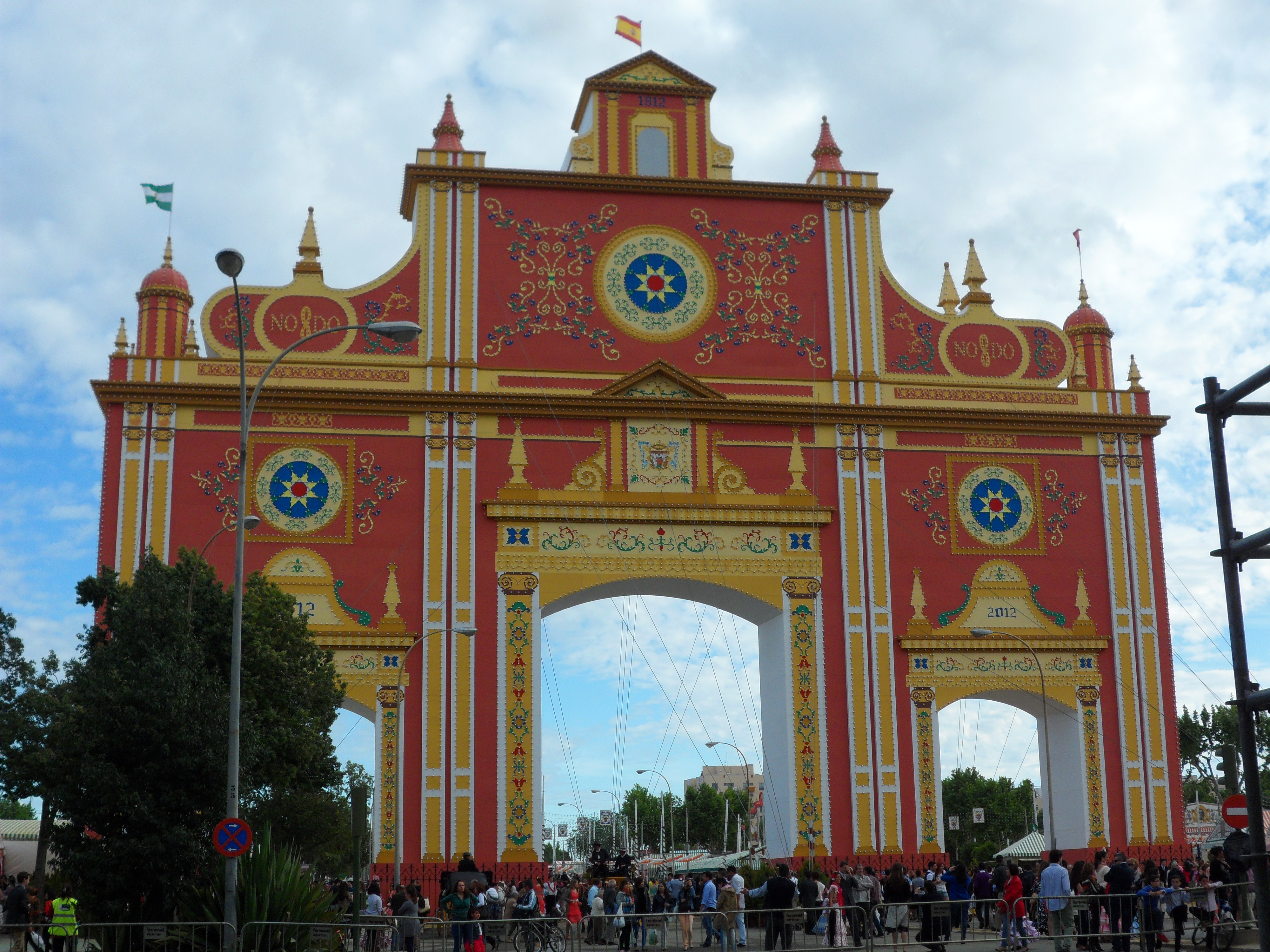 Esta es la portada de la feria 2012, es una reproducción de la Iglesia del Salvador, la más grande de Sevilla después de la Catedral, en commemoración de los tres siglos de su construcción, cada año cambia la portada.