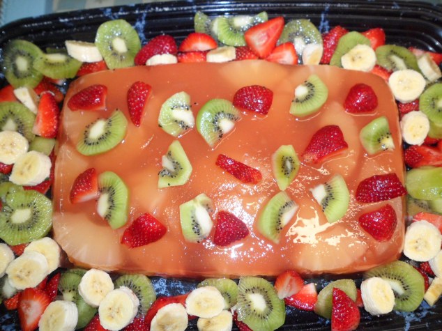 Y mi tarta de piña natural con gelatina de fresa, que esta vez la he acompañado de una macedonia de fruta natural (fresas, kiwis y plátanos)