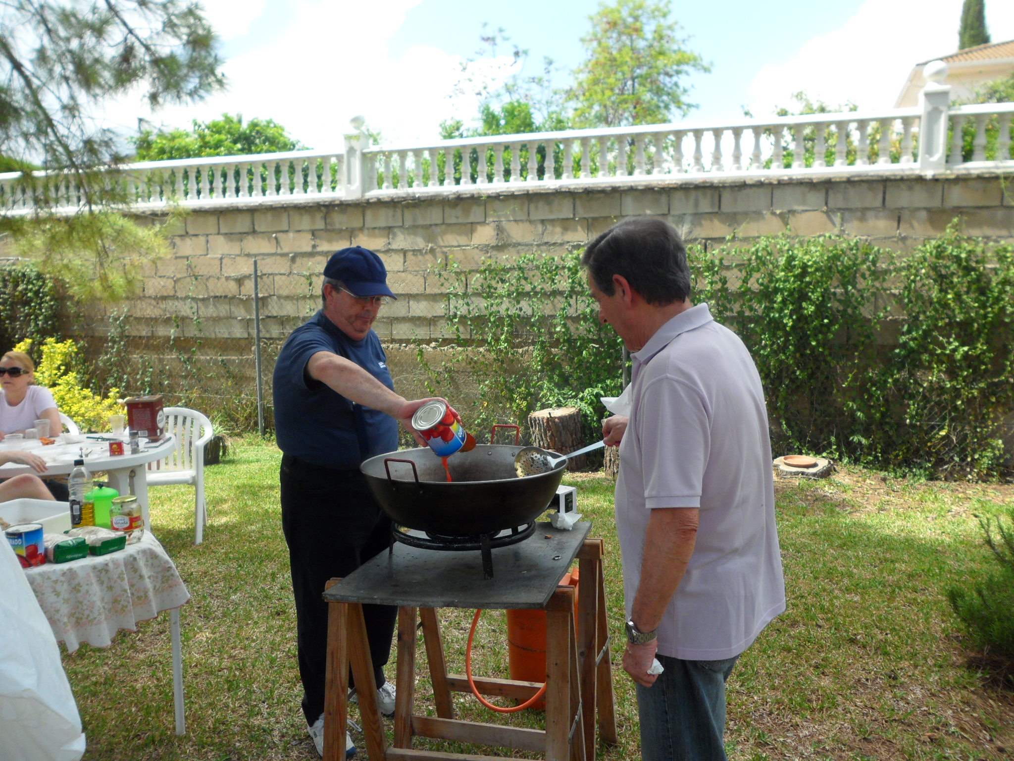Hoy lo han guisado entre Antonio Romero y Marcelo, Rafael mi marido para no ser  menos le ha puesto el colorante, eso sí, con mucho arte