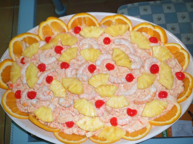 Y os estareis preguntando que hice yo, pues teniendo un blog de recetas de cocina no iba a ser de las que no hice nada, pues sí, aquí lo teneis, hice un cóctel de mariscos (que me lo pidieron) y lo presenté de esta manera, creo que también estaba muy bueno.