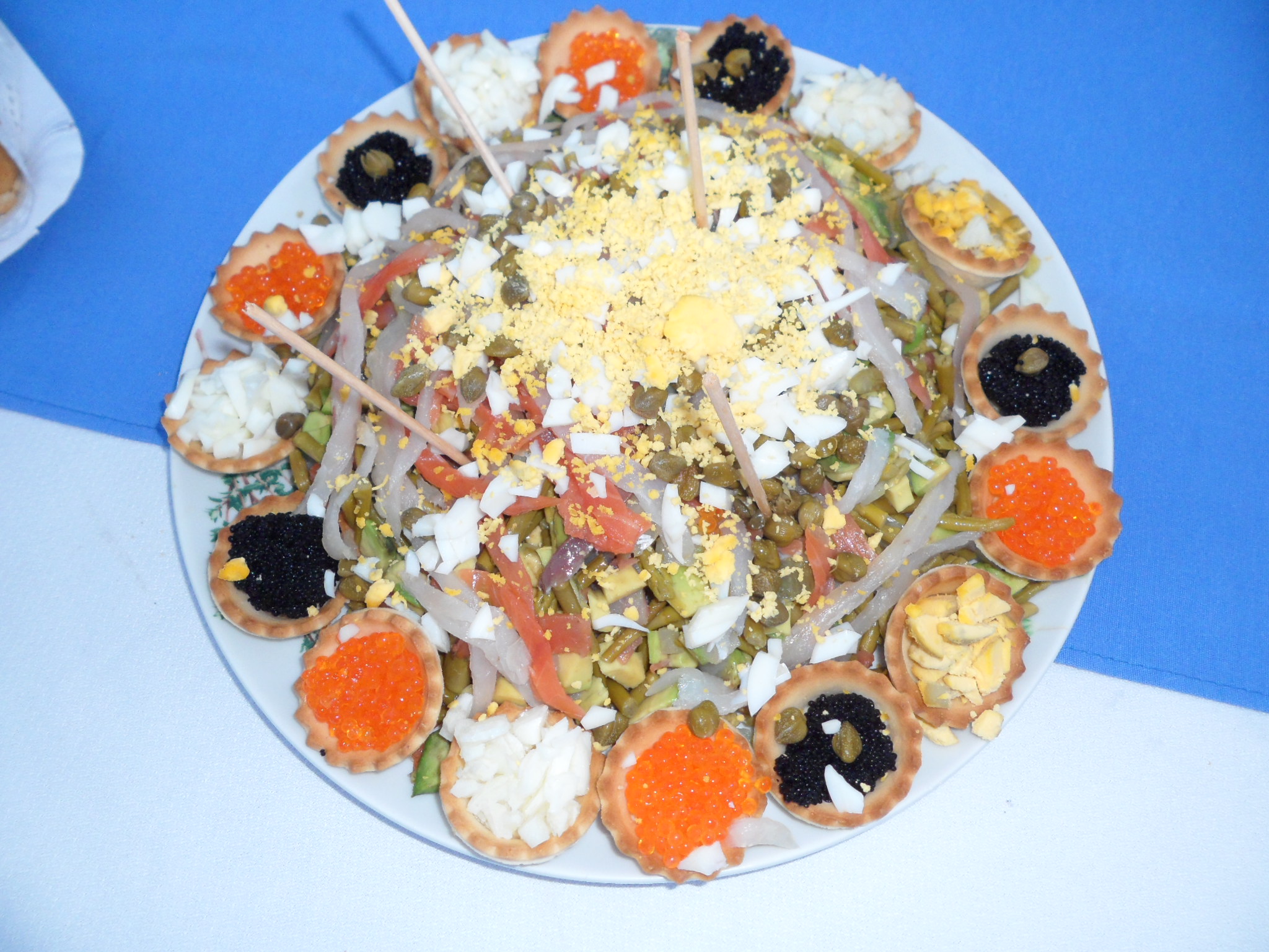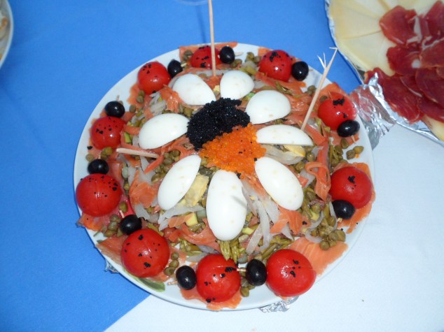 Unas ricas ensaladas de ahumados, adornadas con tarteleta variadas, confeccionadas por Conchy