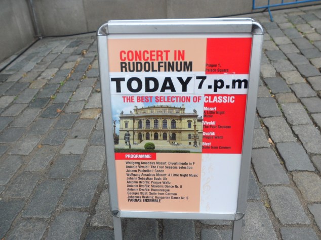 Como os he dicho anteriormente, la música está por todos lados, hay conciertos en teatros, iglesias y diferentes edificios, al pasar por el Palacio Rudolfinum, un palacio neorrenacentista, inaugurado en 1885, vimos el programa del concierto que daban por la tarde y sacamos las entradas