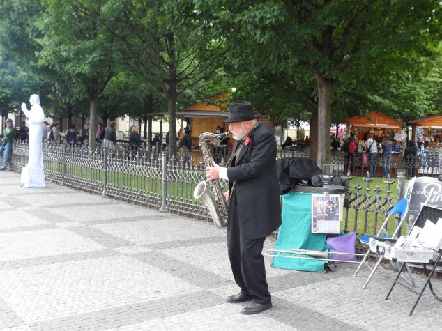 La música está por todos lados, aquí un músico callejero que tocaba bastante bien