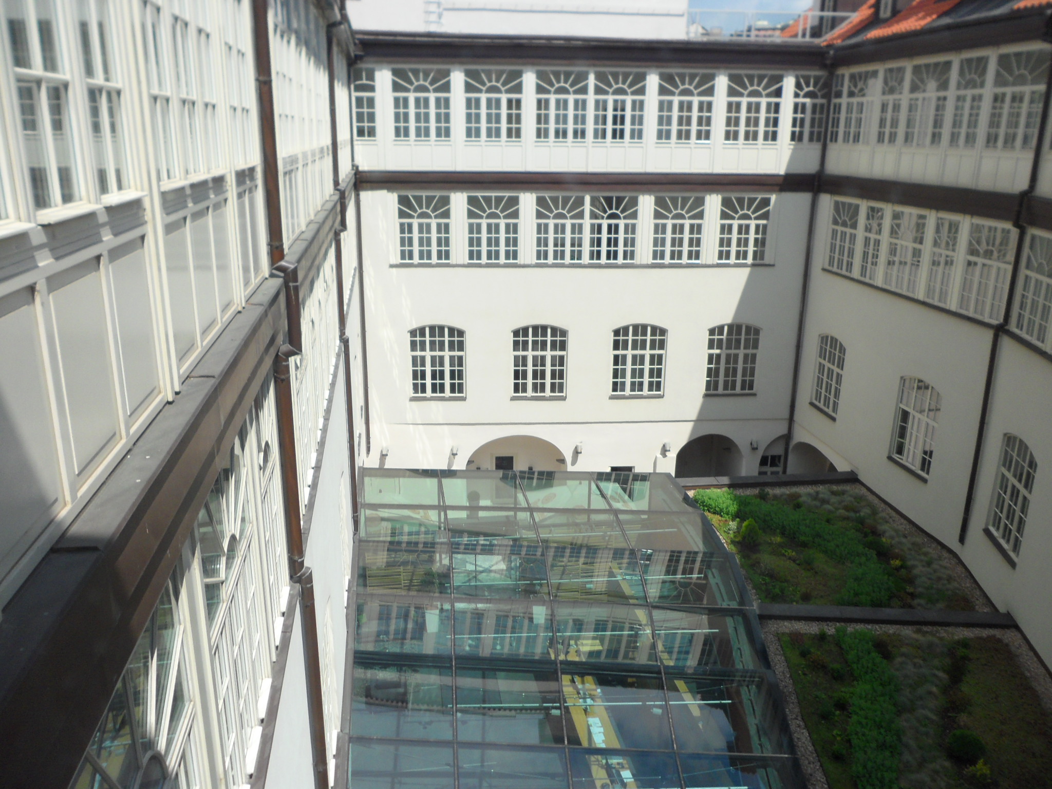 Galería interior a la que daban las puertas de las habitaciones, una preciosidad, con un techo de cristal sobre el hall y un jardín encima