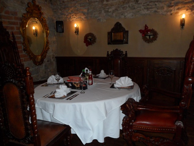 El restaurante es un edificio muy antiguo, aunque la terraza es muy moderna y tiene unos comedores dentro que me llamaron la atención, parecía que estábamos en la Edad Media
