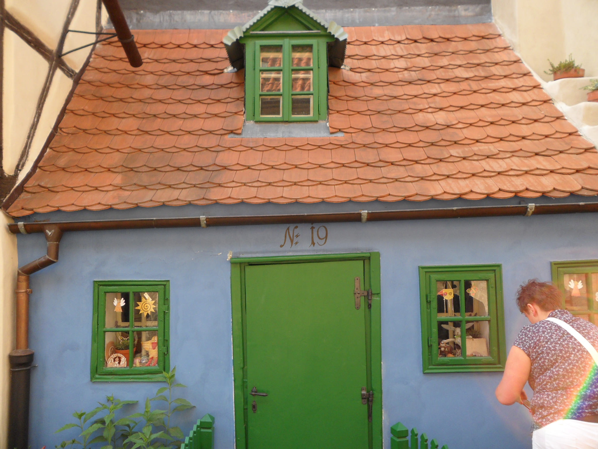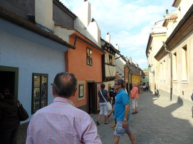 Ya bajamos por el Callejón de Oro, éste es un callejón muy pintoresco constituido por pequeñas casas de diferentes colores, su construcción en la antigüedad fué debida a dar cobijo a los guardianes del Castillo, pero con el tiempo han pasado a ser ocupadas por orfebres, en una de ellas vivió el famoso Frank Kafka