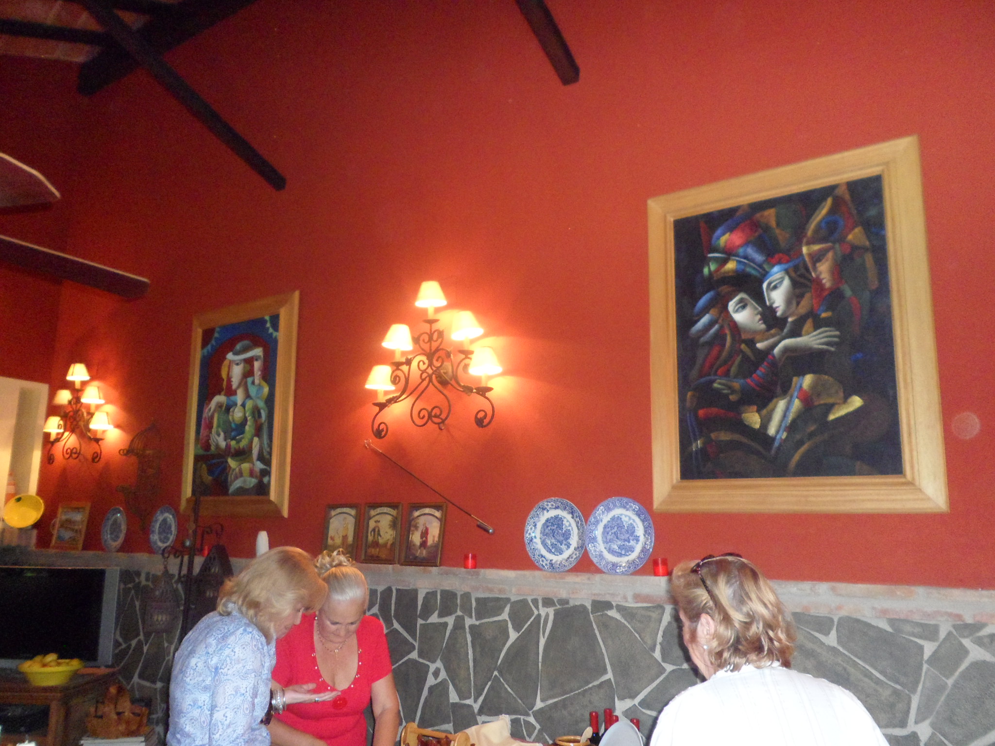 Las mujeres mientras en el salón campero charlábamos de nuestras cosas mientras nos tomábamos un aperitivo.