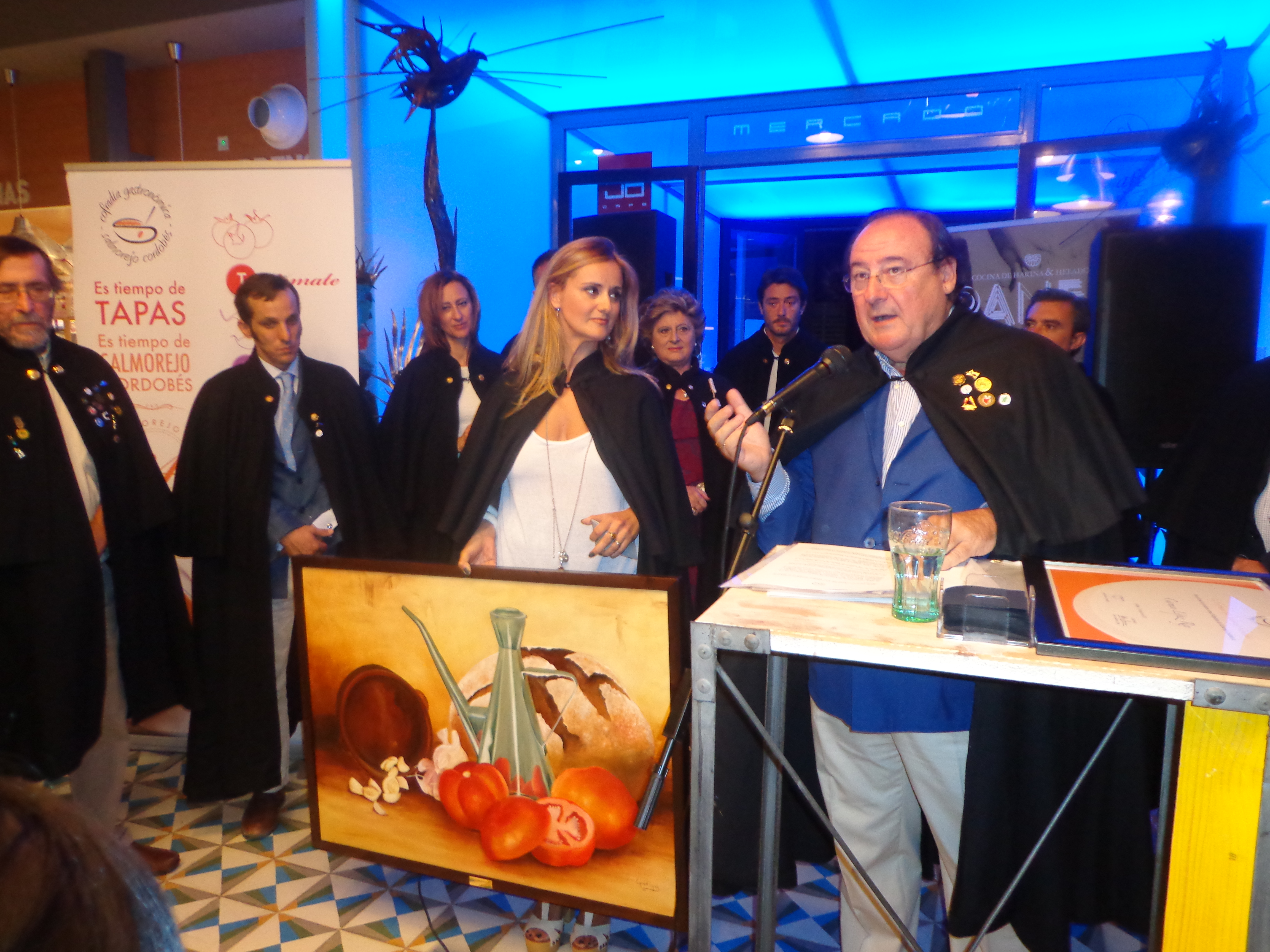 Carmen López Rey donó a la Cofradía un cuadro pintado por ella con los ingredientes del Salmorejo Cordobés.