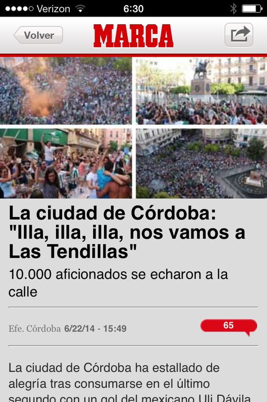 El día de la subida 22/06/2014 fué una gran fiesta en la ciudad, muchos cordobeses se fueron a celebrarlo a la Plaza de las Tendillas.