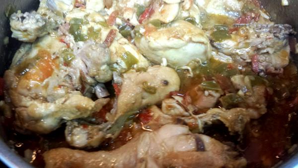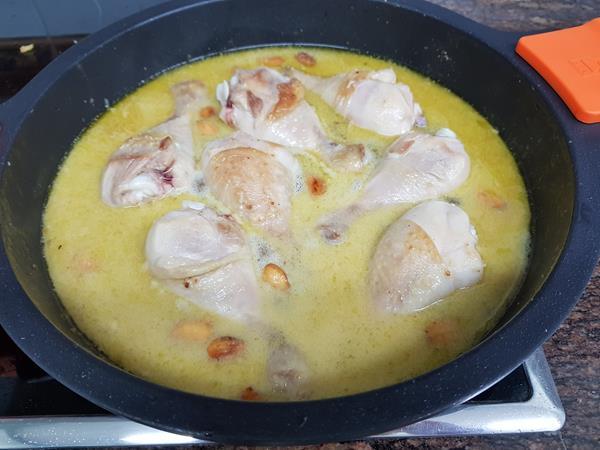 En esta ocasión lo he preparado con muslos de pollo, pero se puede hacer con cualquier parte del mismo, aunque los muslos y sobremuslos son la parte más jugosa.
