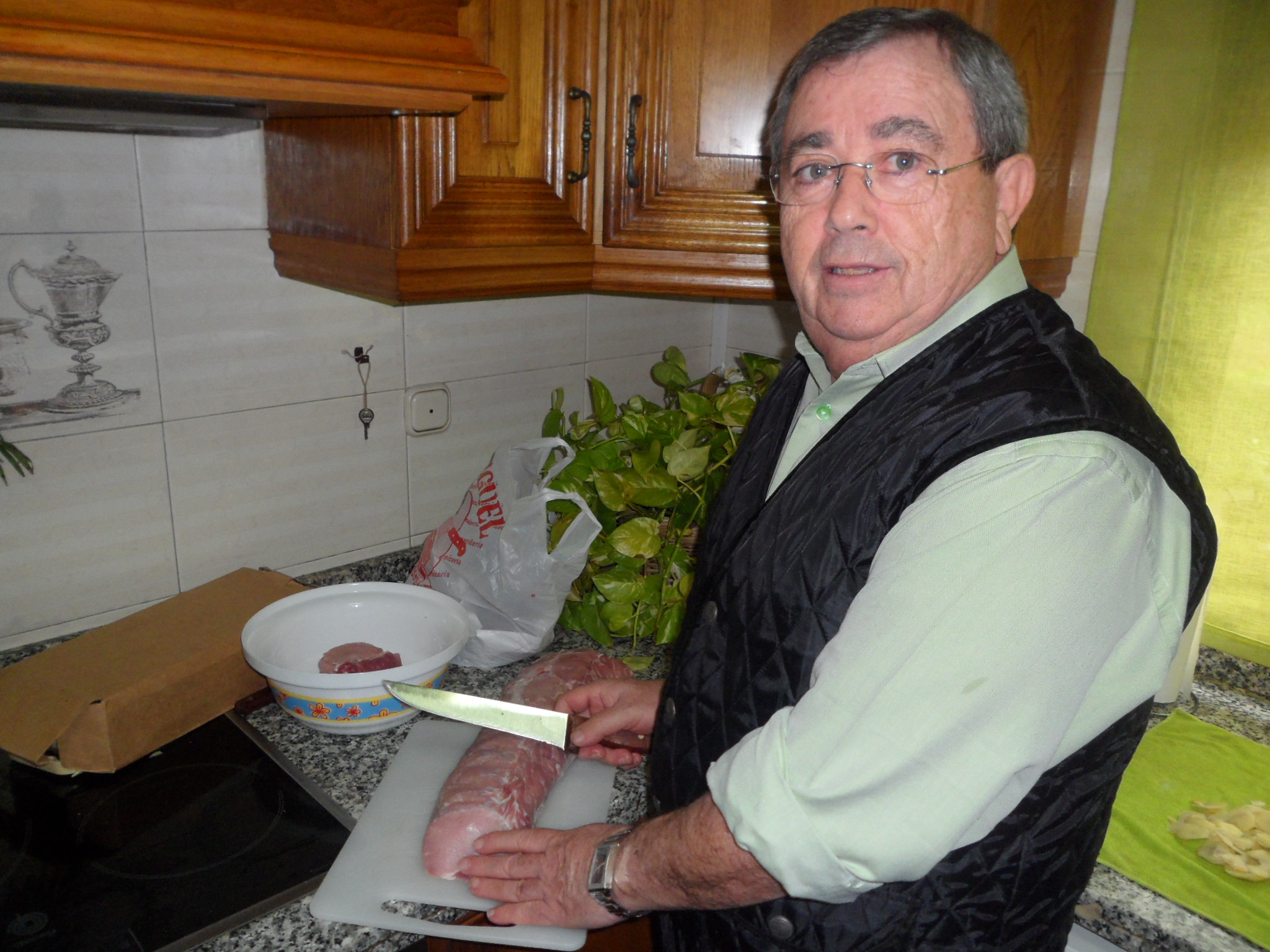 Antonio Romero, nuestro Alma Mater, entendiéndoselas con un lomo de cerdo.