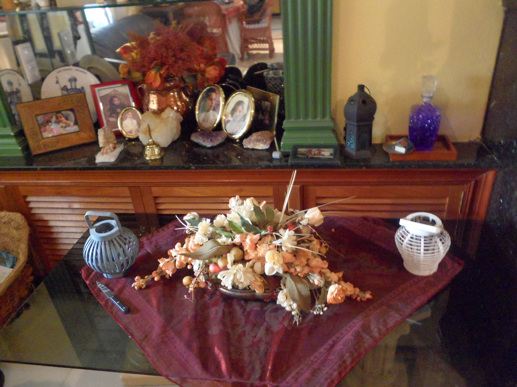 Un bonito centro, hecho por la esposa de Antonio Romero, otra Lola y, sorprendentemente está confeccionado con servilletas de papel, una obra de arte, yo ví como lo hacía, una maravilla!!