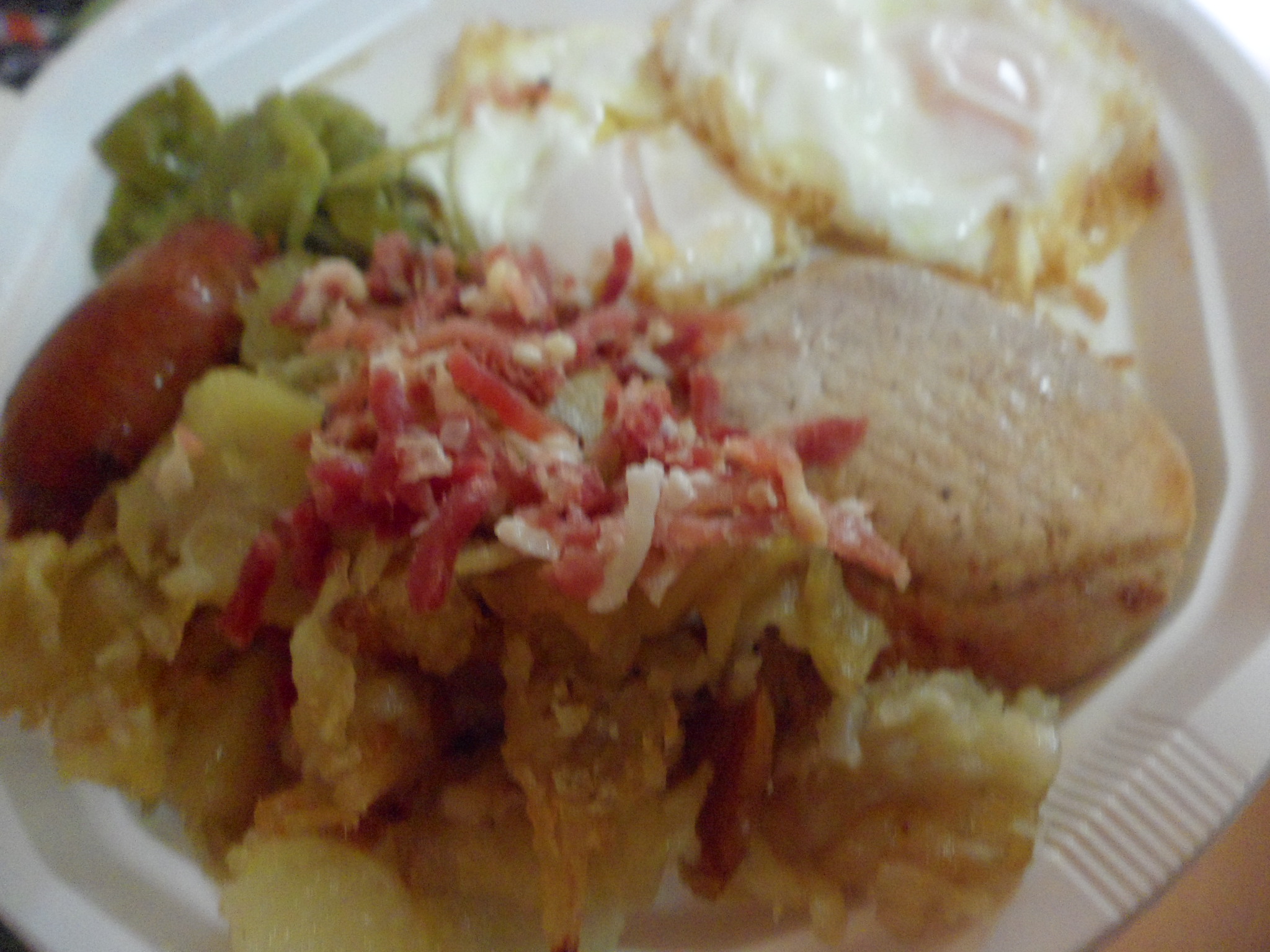 Aquí ya, friendo los huevos.