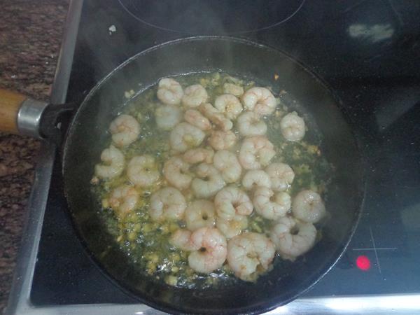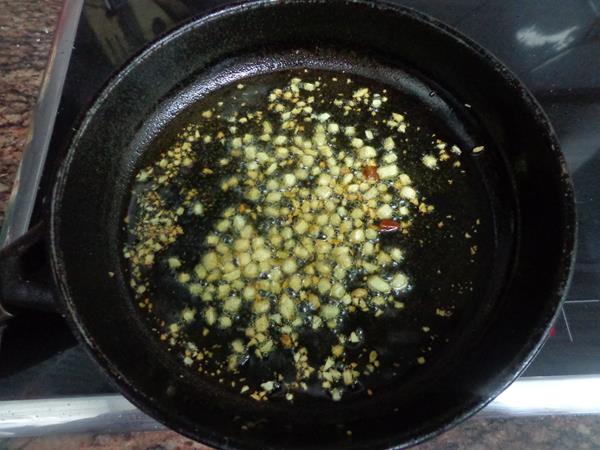 Ponemos el aceite en la sartén y cuando esté caliente añadimos los ajos troceados