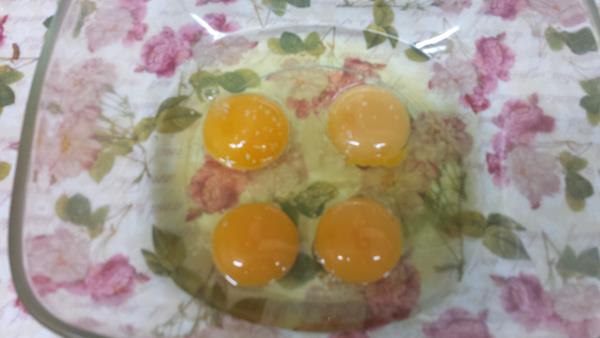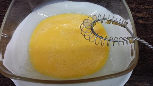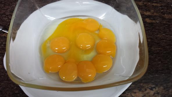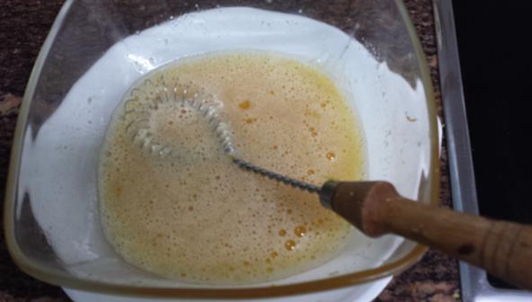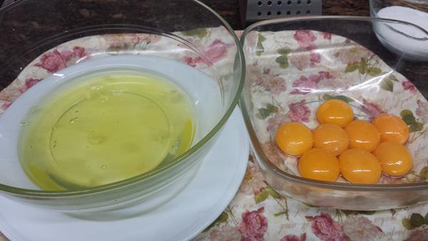 Separamos las claras de las yemas, batimos las primeras con unos granos de sal, hasta llegar al punto de nieve.