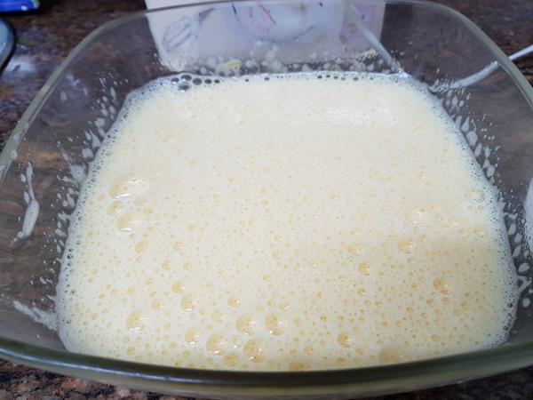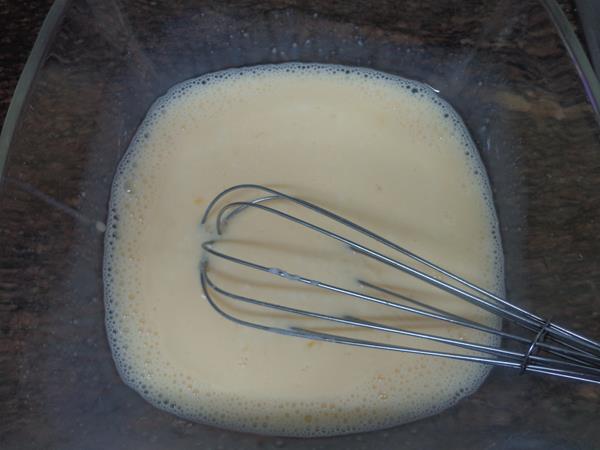 En otro bol batimos los huevos con el azúcar hasta obtener una mezcla blanquecina
