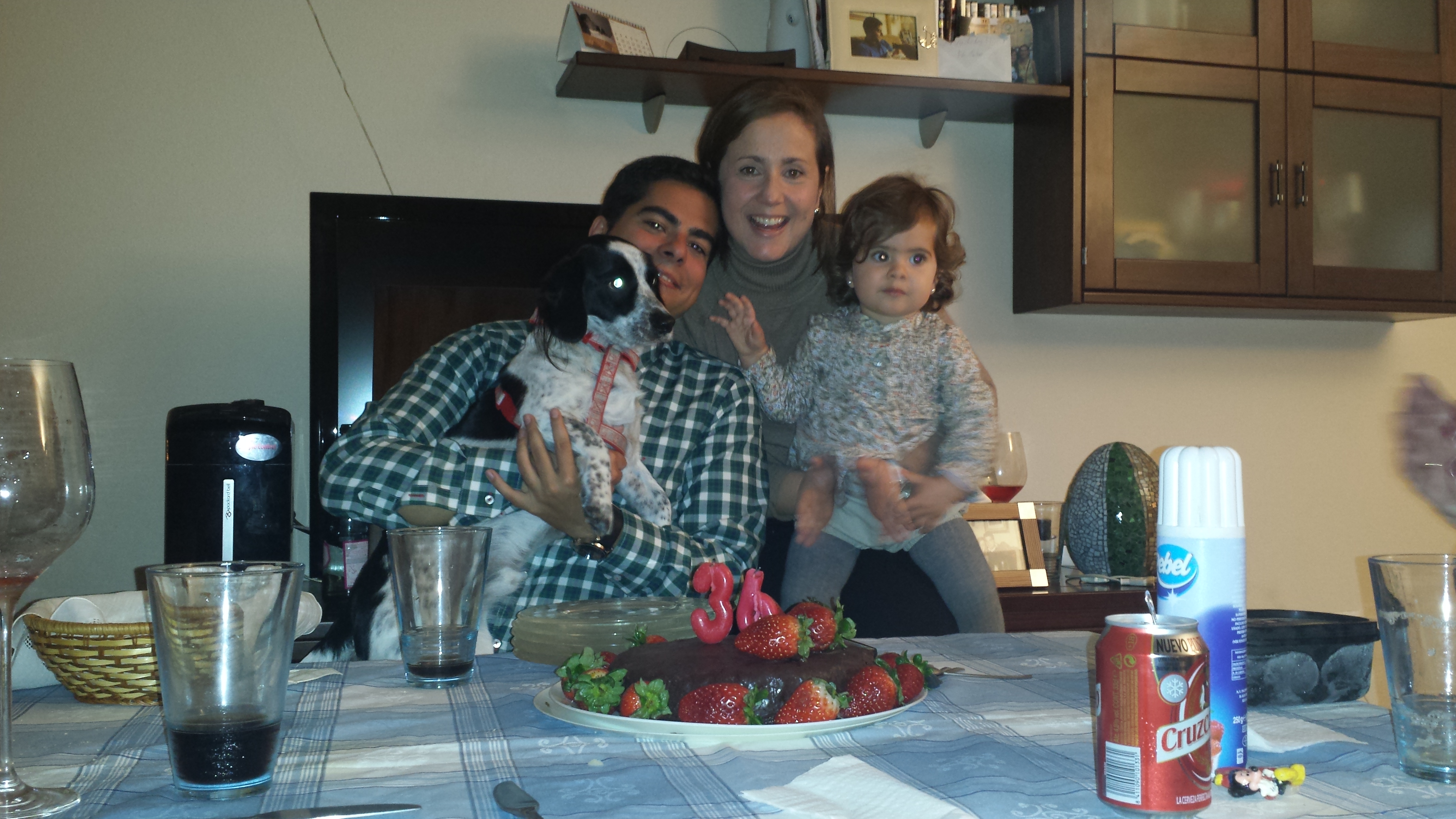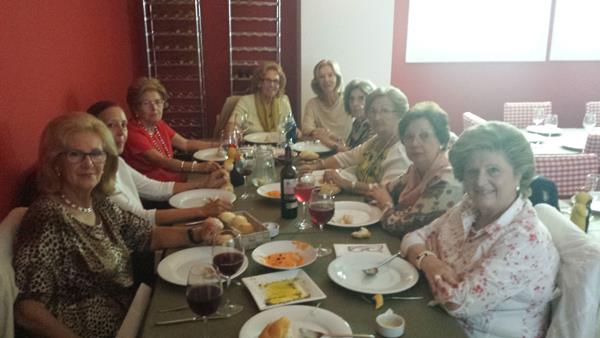 Aquí nuestro grupo, una con antifaz, para vernos como estábamos, pues durante la cena no tuvimos ocasión de vernos.