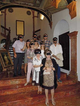 Una vez dentro de Palacio, salió a recibirnos Araceli, el ama de llaves del Sr. Conde, que nos llevó ante él, y nos repartió antifaces para todos, ya que toda la experiencia se desarrolla privados del sentido de la vista, para que tu imaginación vuele y vivas a través de los demás sentidos la Historia de Elliossana (Lucena) y la del Conde. No os puedo mostrar fotos porque no se podían hacer y además tuvimos que desconectar por completo los móviles, espero que os pueda trasladar con mis palabras lo que allí se vivió.