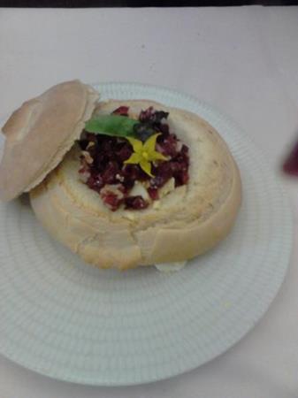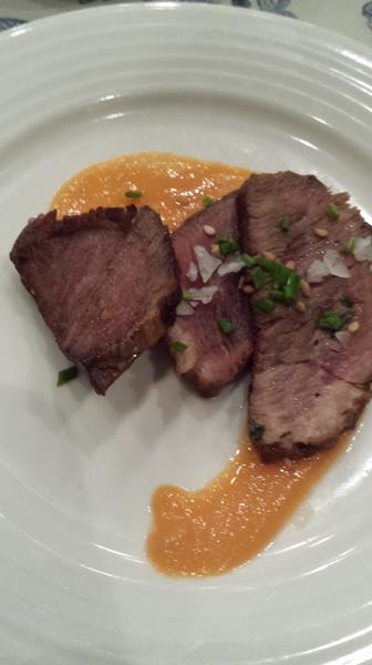 Un tataki de presa ibérica con Salmorejo Cordobés, la combinación es magnífica.