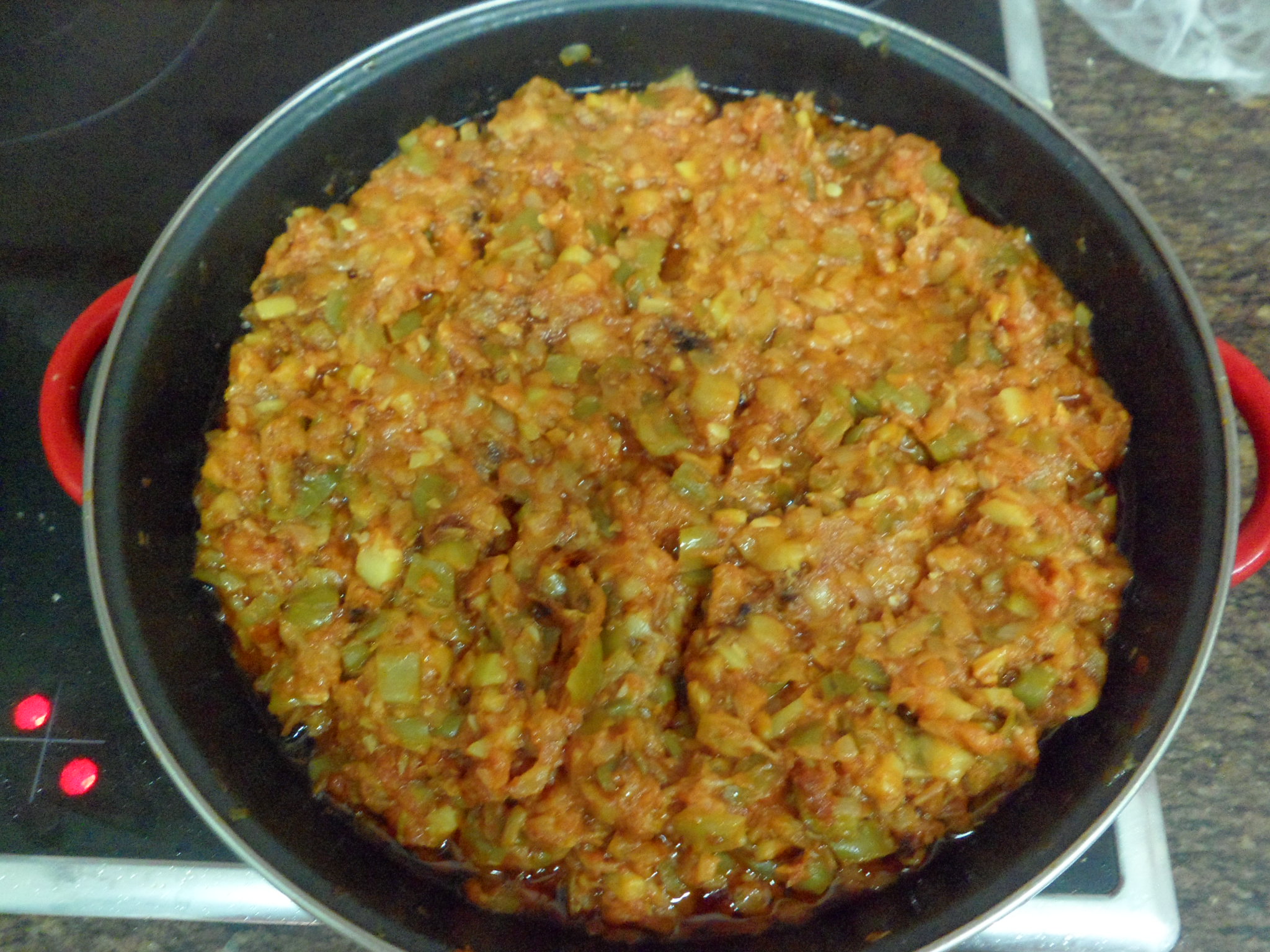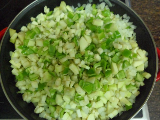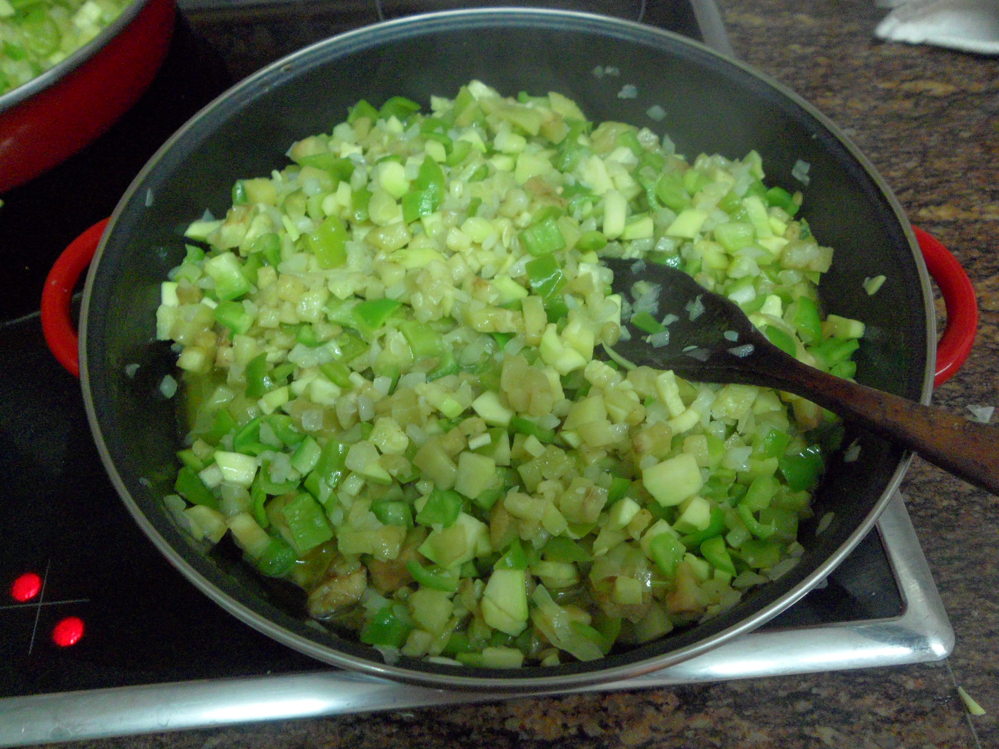 A continuación añadimos las verduras troceadas y seguimos rehogando.