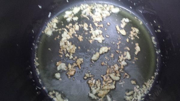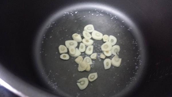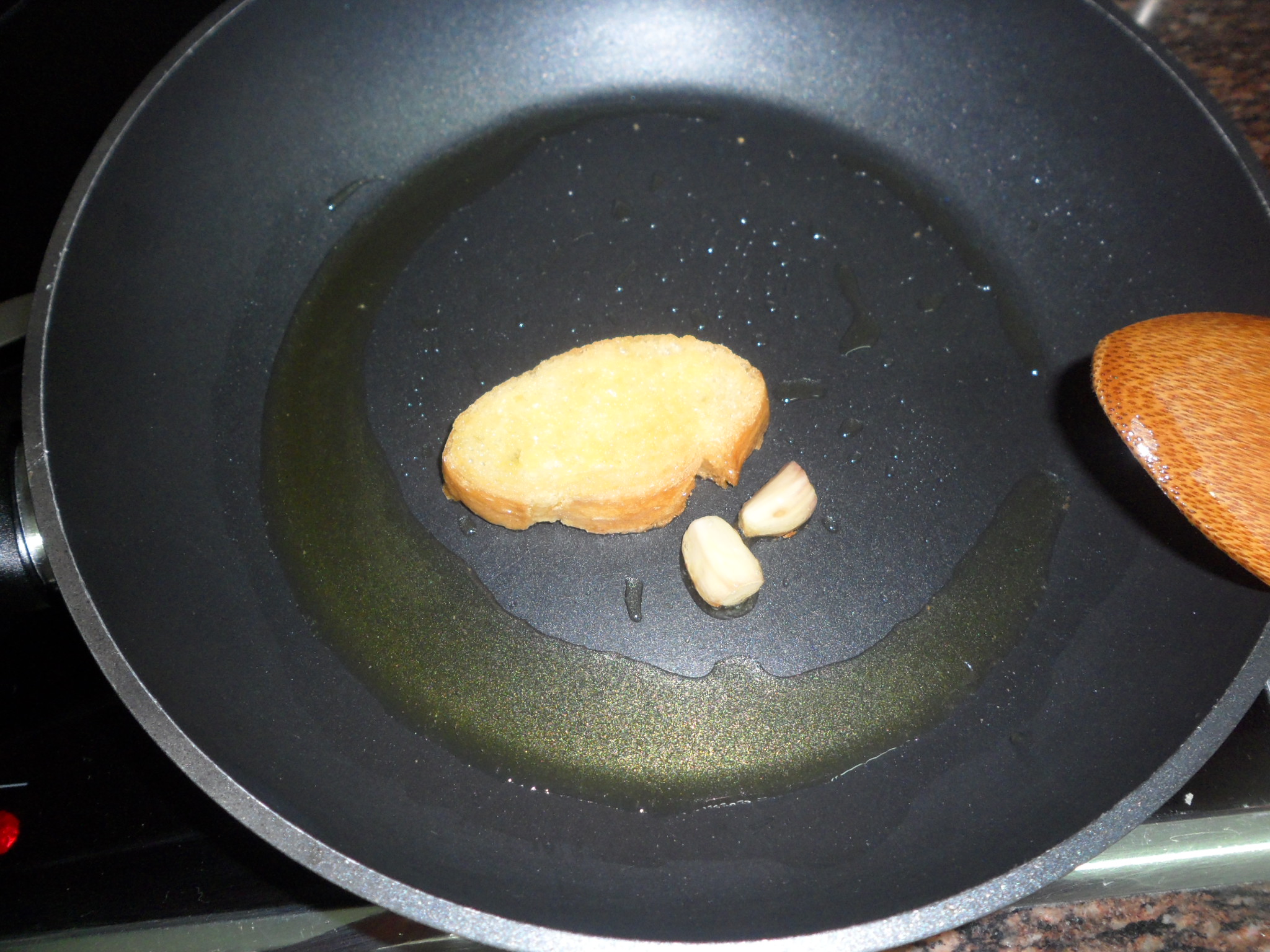 En la cazuela ú olla donde vayamos a cocinarla ponemos los ajos con unos granos de sal y los machacamos ahí directamente, una vez machacados, le añadimos el aceite y los ponemos al fuego.