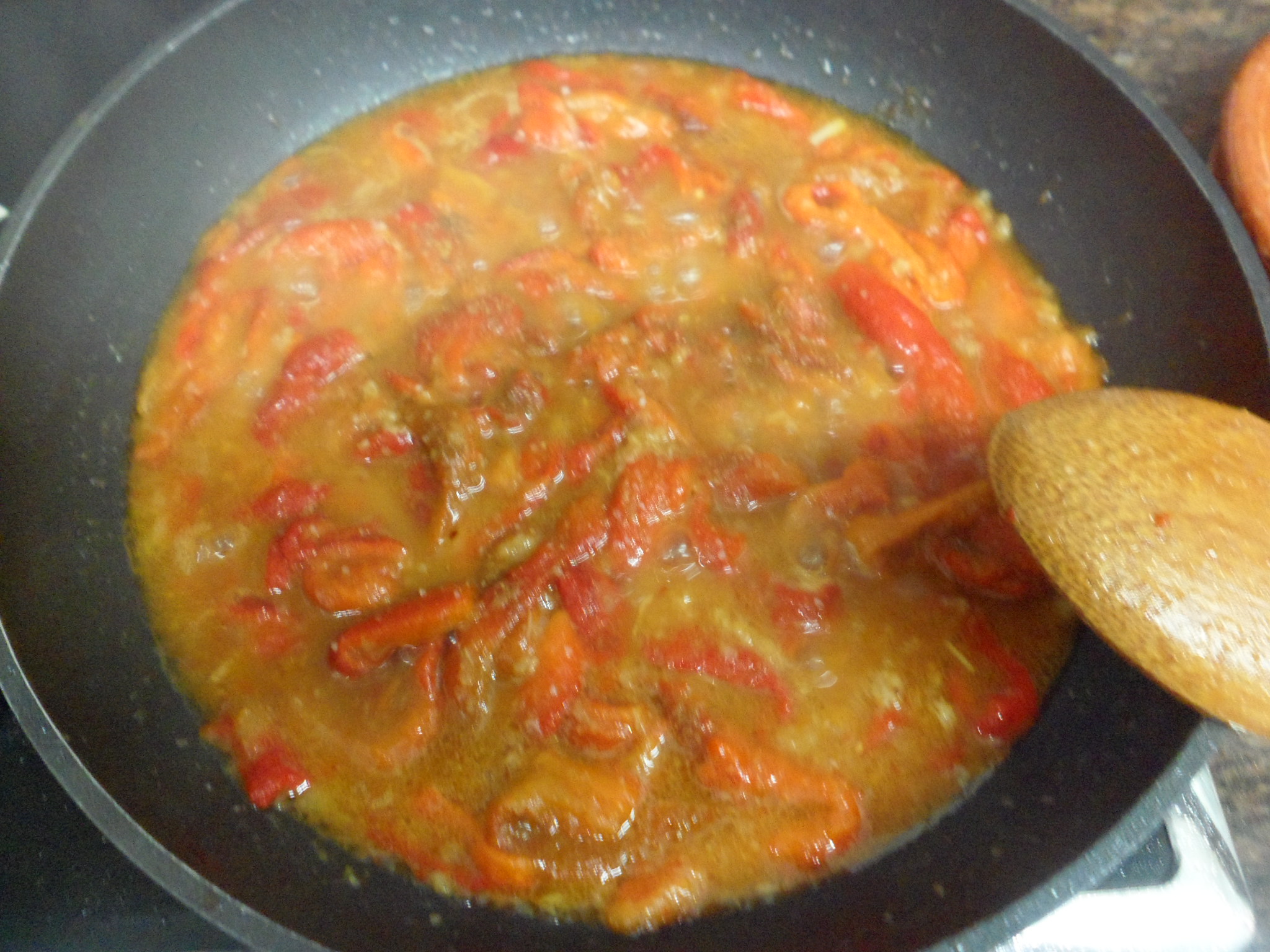 A continuación le añadimos una cucharada de Pimentón de la Vera y los cominos molidos y sal al gusto, continuamos la cocción hasta que se mezclen bien todos los sabores.