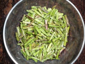 1 manojo de espárragos trigueros de 1/2 Kg. aproximádamente( se llaman trigueros porque antiguamente nacían en los sembrados de trigo)