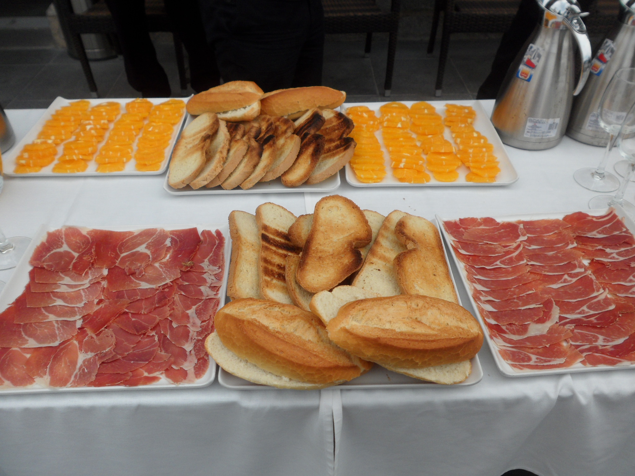 Nuestro cofrade nos ofreció un desayuno molinero en el que no faltó ninguno de los ingredientes básicos de dicho desayuno: pan, aceite, tomate, jamón, naranjas, aceitunas, café.