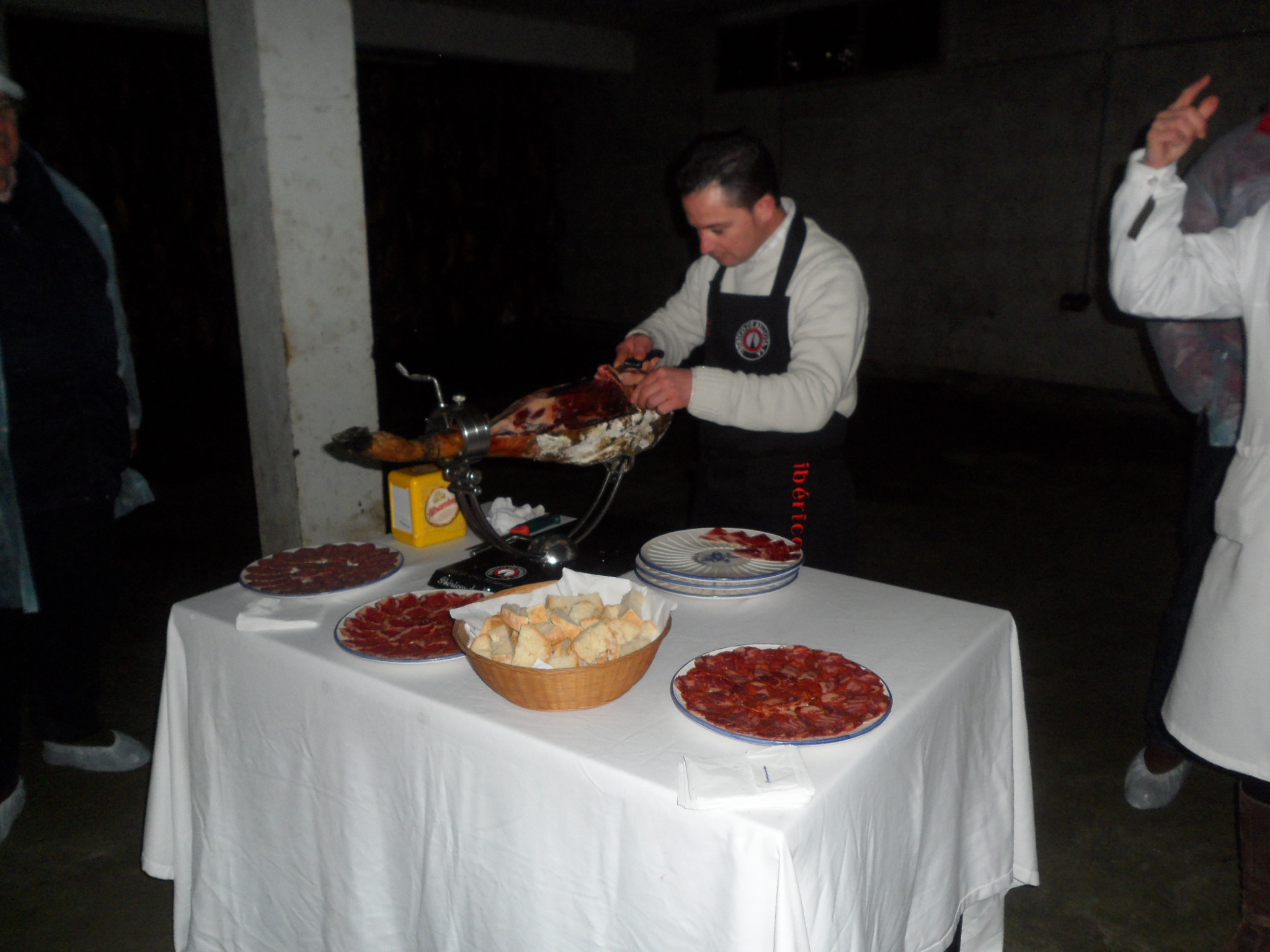 Allí también nos recibió y nos saludó el alcalde, y tampoco faltó el buen jamón ibérico con su correspondiente cortador.