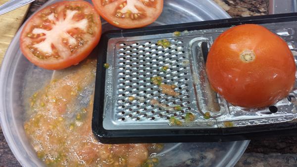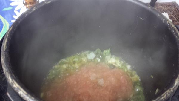 Cuando vemos estas verduras un poco pochaditas, le agregamos el tomate rallado que también se sofría.