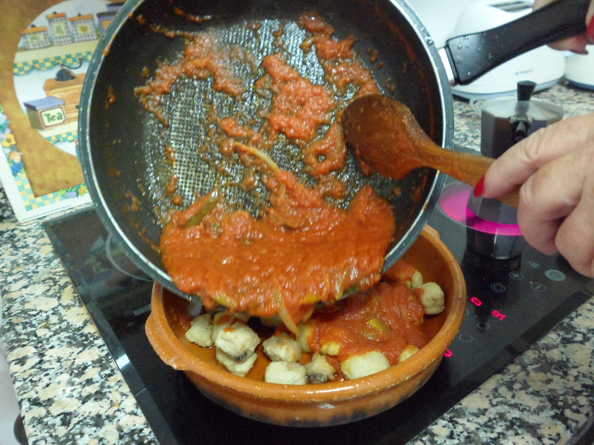 Pasado el tiempo de cocción, destapamos la olla, pasamos las verduras por el pasapurés y añadimos al guiso, se espesa el líquido del mismo y además aprovechamos totalmente las verduras, sólo se tiran las pieles.