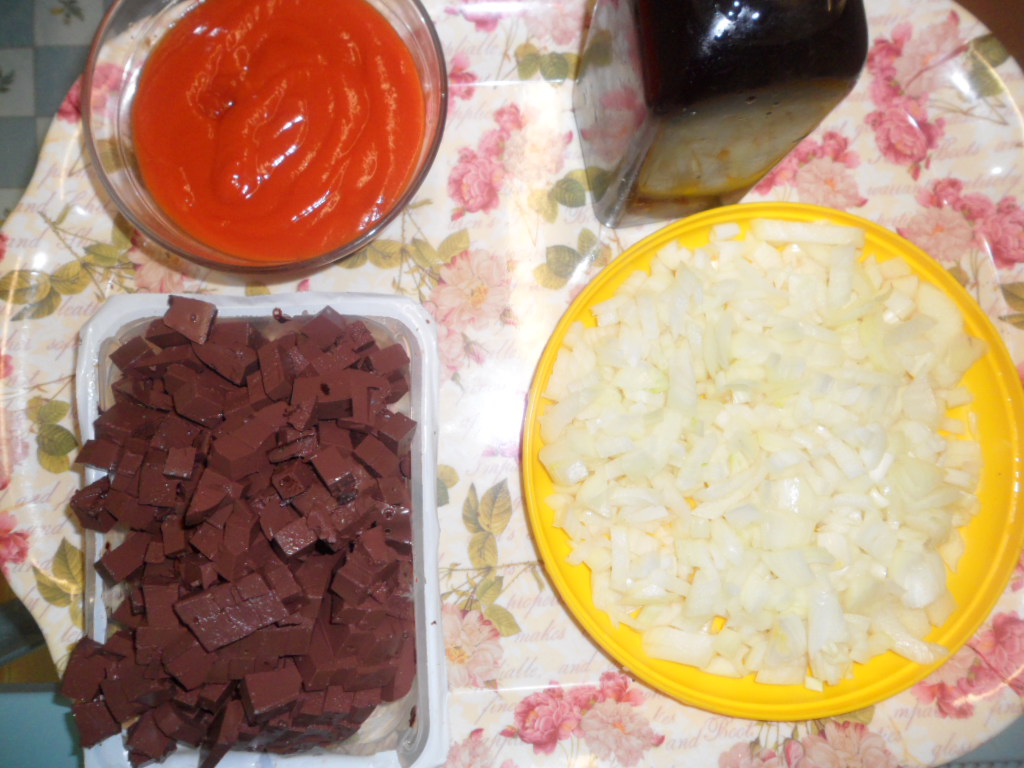 - 100 grs. de carne picada de ternera, cerdo y pollo (ó de una sola de ellas) por persona