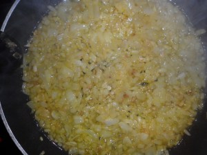 Mientras se hierve la pasta, ponemos el aceite en una sartén en el fuego y vamos friendo la cebolla, cuando empiece a dorar, le añadimos la carne picada.